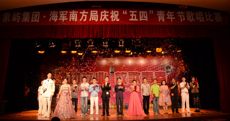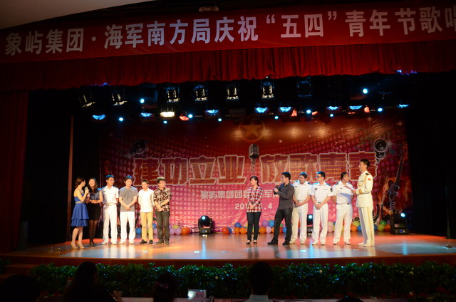 五月的花海,飛揚(yáng)的青春!為慶祝中國共產(chǎn)主義青年團(tuán)成立90周年,象嶼集團(tuán)團(tuán)委和海軍南方局團(tuán)委共同舉辦 “建功立業(yè),放歌青春”慶祝“五四”青年節(jié)歌唱比賽,來自兩個(gè)單位的16名決賽選手登臺獻(xiàn)藝,在廈公司領(lǐng)導(dǎo)、員工,以及共建單位海軍南方局官兵近三百五十人到場吶喊助威。