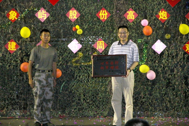 經(jīng)過一場緊張激烈的籃球友誼賽后,晚會正式開始。鄧啟東總經(jīng)理代表公司向三連贈送了慰問品,高炮三連指導員發(fā)表講話提出三連在象嶼股份的攜手同行中部隊現(xiàn)代化建設(shè)得到持續(xù)發(fā)展,同時感謝公司多年的支持并回贈“心系國防,擁軍模范”牌匾。象嶼股份黨總支副書記湯開宏同志回顧了雙方共建十五年的歷史并總結(jié)共建以來象嶼股份在高炮三連敢打敢拼精神的鼓舞、帶動下的不斷發(fā)展壯大,最后對共建關(guān)系提出美好希冀,期望雙方在繼續(xù)共建中不斷共同促進。