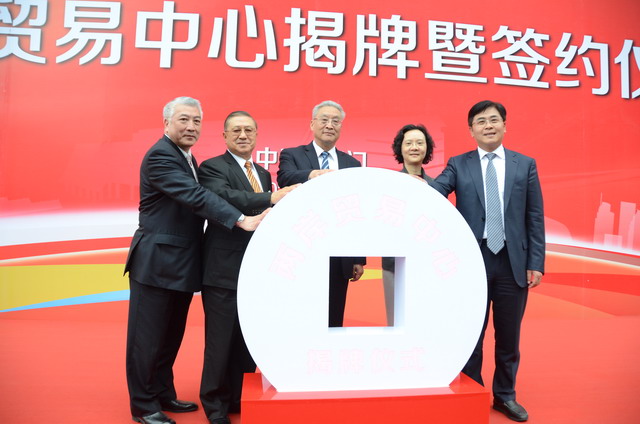 海峽兩岸關(guān)系協(xié)會(huì)張銘清副會(huì)長(zhǎng)、商務(wù)部臺(tái)港澳司陳星司長(zhǎng)、廈門市人民政府張燦民副市長(zhǎng)、臺(tái)灣兩岸共同市場(chǎng)基金會(huì)詹火生理事長(zhǎng)、臺(tái)灣工商協(xié)進(jìn)會(huì)駱錦明理事長(zhǎng)為兩岸貿(mào)易中心總部揭牌