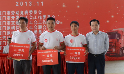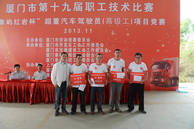 經(jīng)過(guò)理論培訓(xùn)及考試,激烈場(chǎng)地駕駛、排故障比武,最終三十多名司機(jī)贏得行業(yè)高級(jí)工證書。象嶼股份旗下太平物流車隊(duì)的參賽選手獲得較好成績(jī)。陳建立和林本來(lái)分獲四、五名,將被市勞動(dòng)競(jìng)賽委員會(huì)授予“技術(shù)能手”榮譽(yù)稱號(hào);范思光獲得第九名,陳民獲得第十四名。據(jù)了解,獲得第一名的選手將在明年4月份獲得廈門市人民政府授予的“五.一”勞動(dòng)獎(jiǎng)?wù)隆?span lang="EN-US">