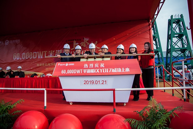 1月21日,由南通象嶼海洋裝備有限責(zé)任公司(以下簡稱“象嶼海裝”)建造的60,000DWT半潛船順利出塢。江蘇泛洲船務(wù)有限公司董事長江厥杰、中國科學(xué)院自動化研究所軍事顧問原海軍訓(xùn)練基地副司令員張錦榮、江蘇省交戰(zhàn)辦主任林有鎮(zhèn)、南京交通運輸局局長徐衛(wèi)國、中國船級社江蘇分社副總經(jīng)理張東標(biāo)、象嶼集團黨委委員、象嶼股份黨委書記、總經(jīng)理、象嶼海裝董事長鄧啟東等共計200多名各界人士參加了象嶼海裝60,000DWT遠洋自航半潛船上水儀式。
