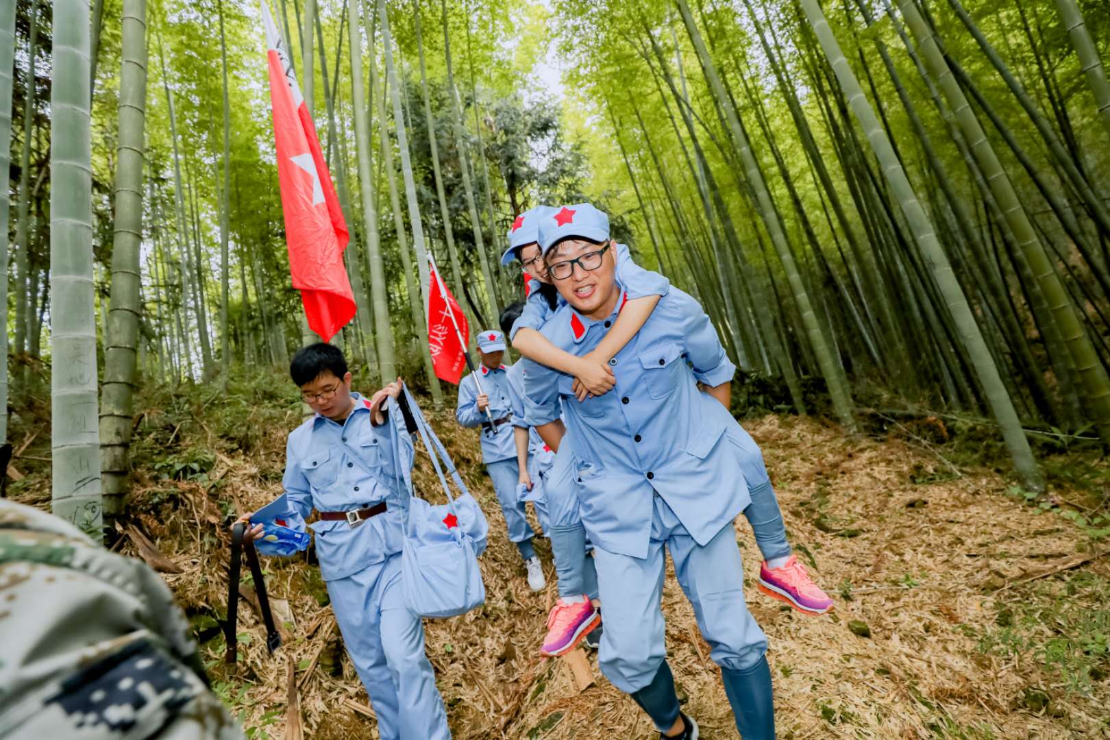 一路上,有的隊員見伙伴體力不支,便主動背起隊友在泥濘的小路上前行;還有些隊員為了振奮士氣、活躍氣氛,不停地奔波于隊伍的兩頭,鼓勵落后的隊員,唱起紅歌、踏著拍子,帶領(lǐng)隊員昂揚前行。最終,全員均在規(guī)定時間內(nèi)挑戰(zhàn)成功,一個都不少!