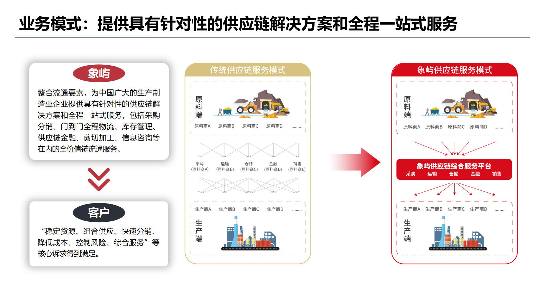 制造業(yè)企業(yè)日益專業(yè)化,對供應鏈服務的需求從簡單追求成本,轉變?yōu)楦非笮?,市場亟需?span style="color: rgb(239, 25, 25); box-sizing: border-box;">提供“一攬子”服務、具備效率優(yōu)勢的大宗供應鏈服務商。