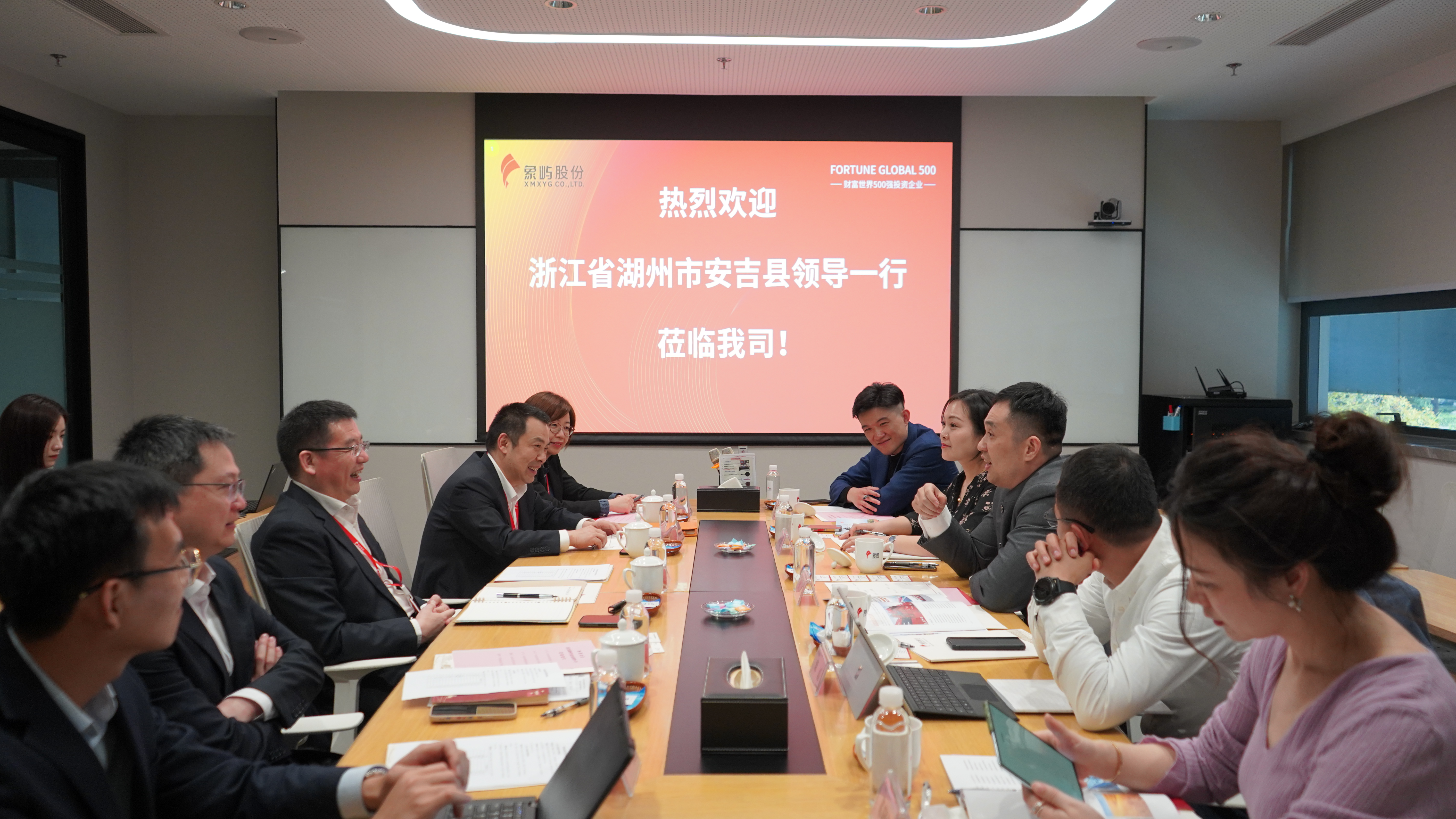 3月3日,安吉縣財(cái)政局黨委委員、副局長劉清一行到訪象嶼股份,象嶼集團(tuán)黨委委員、象嶼股份黨委書記、董事長鄧啟東,象嶼股份黨委委員、副總經(jīng)理程益亮熱情接待。